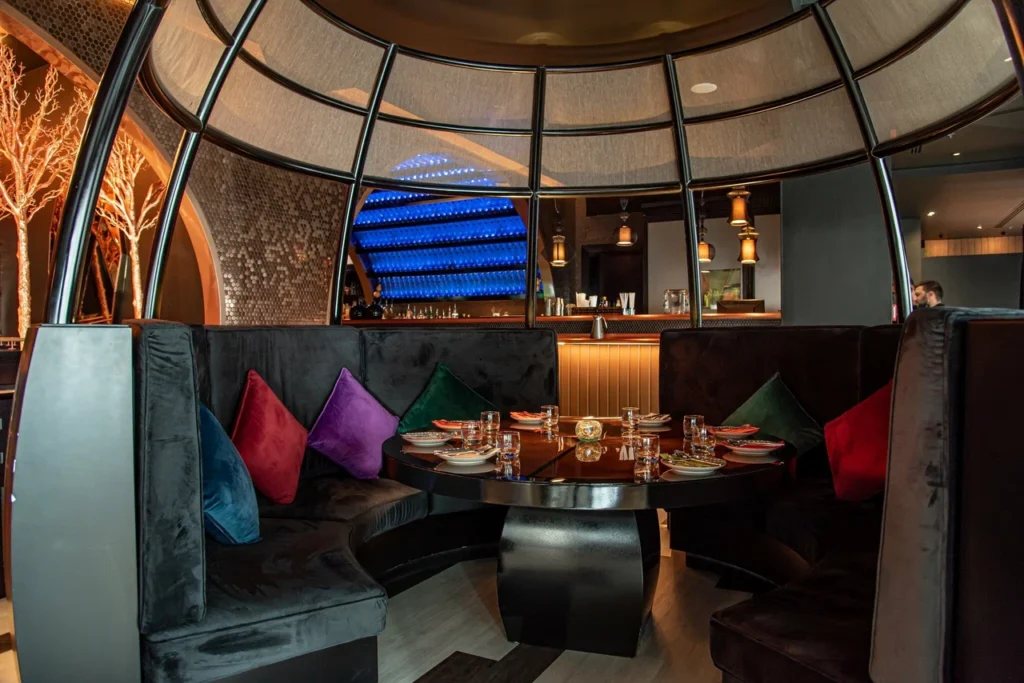 The design blends visual drama with functional performance through refined lighting, acoustics, and durable finishes. Complex fit-out works integrated bespoke features with seamless MEP coordination. End-to-end project management and hospitality consultancy ensured operational efficiency and commercial success.